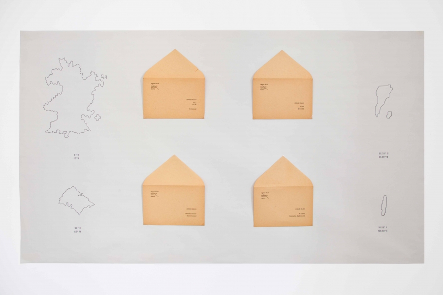 Die Arbeit Beyond Coordinates verkettet vier Fälle verschwundener Expeditionen mit vier verschwundenen Inseln über das Medium der Reise ansich, dem Brief. Unterschiedliche Irrtümer und nautische Fehler erschufen Inselland. Mit dem Projekt, diese fiktiven Landmassen mit Briefen zu adressieren