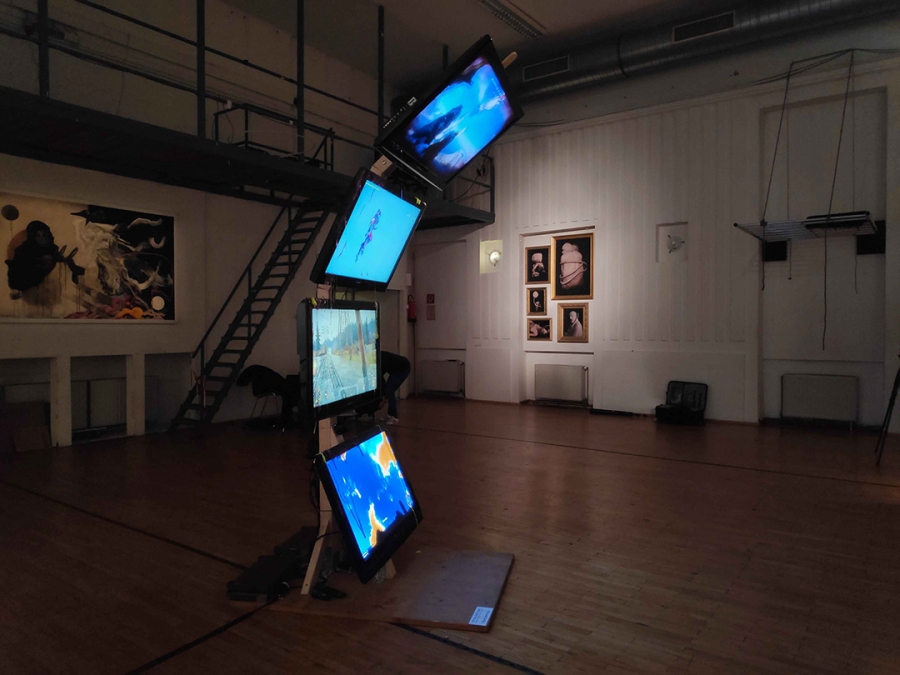 Vierkanal-Videoinstallation (loop) + Audio, passive Lautsprecher