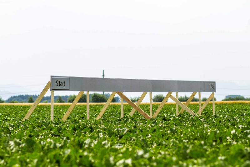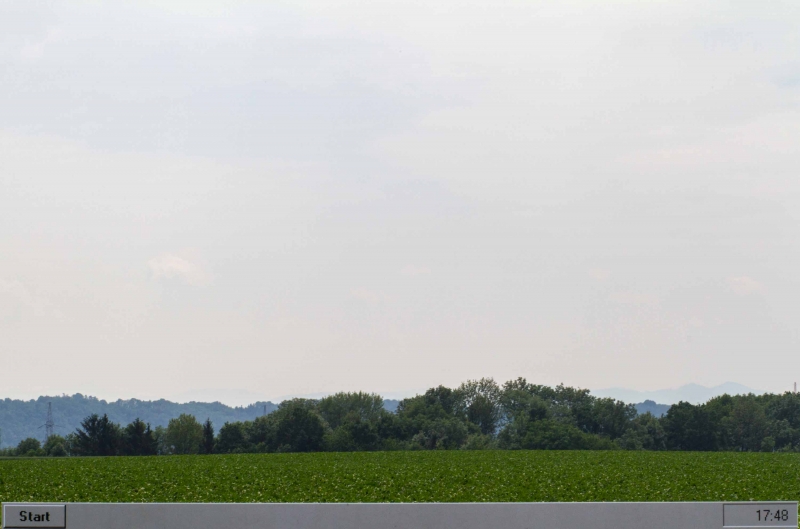 The project Framework is installed in a sugar beet field in Kronstorf that borders a parcel purchased by Google. Here a reduced Window taskbar is mounted on a twelve-meter- long frame. This bar forms a lower frame, so the background landscape converts into computer desktop. This physically real ground became property of the world’s largest browser company and now it becomes digitalized back by the